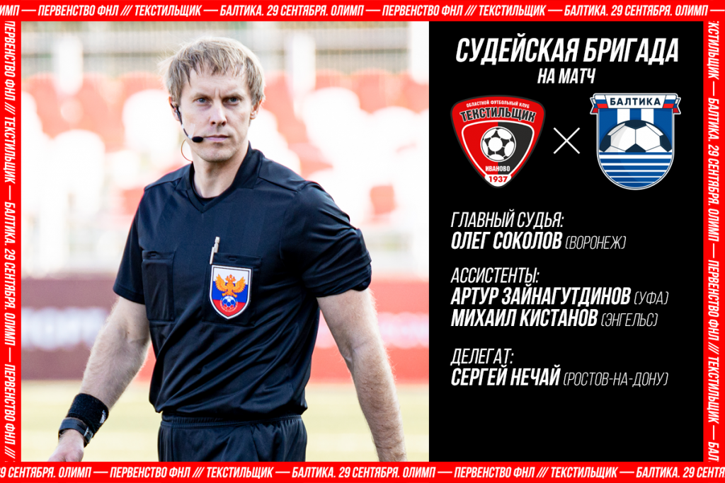 «Текстильщик» — «Балтика»: определилась судейская бригада на матч